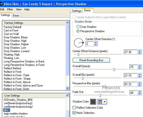 21. Effetti>Plugins>Alien Skin Eye Candy 5 Impact - Perspective Shadow.