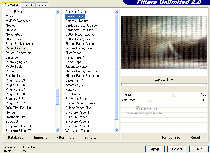 5. Effetti>Plugins>Filters Unlimited 2.0 - Paper Textures - Canvas Fine, con i settaggi standard.