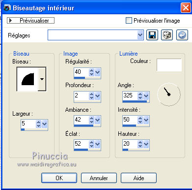 Effets>Effets 3D>Biseautage intérieur, comme précédemment.