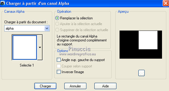 Sélections>Charger/Enregistrer une sélection>Charger à partir d'un canal Alpha.