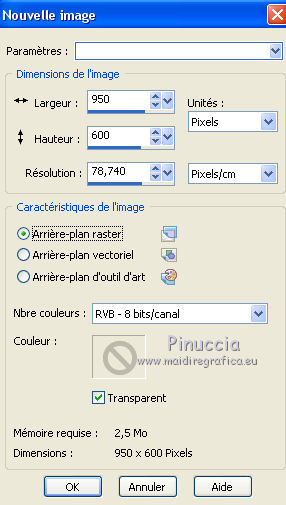 1. Ouvrir une nouvelle image transparente 950 x 600 pixels.