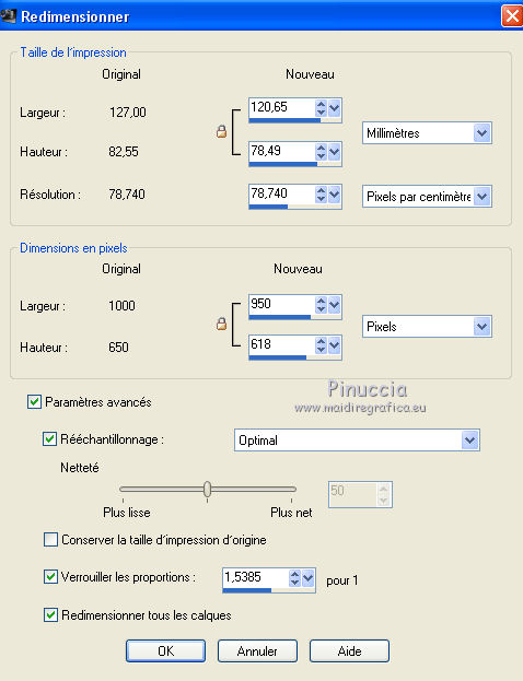 39. Image>Redimensionner, 950 pixels de largeur, redimensionner tous les calques coché.
