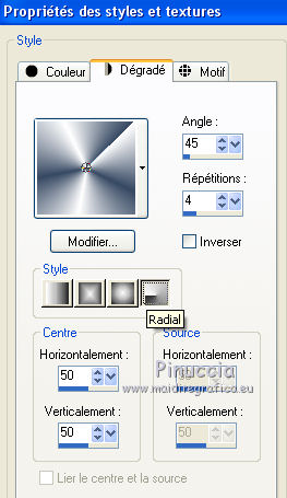 Préparer en avant plan un dégradé de premier plan/arrière plan, style Radial.