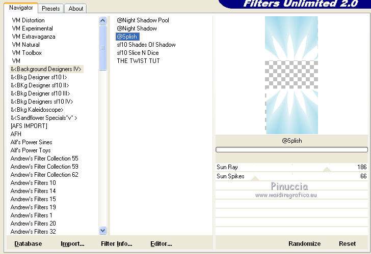 34. Effetti>Plugins>Filters Unlimited - Background Designers IV - Splish, con i settaggi precedenti.