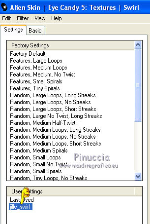 Seleziona il preset jille-swirl e ok (i settaggi sono già correttamente impostati).