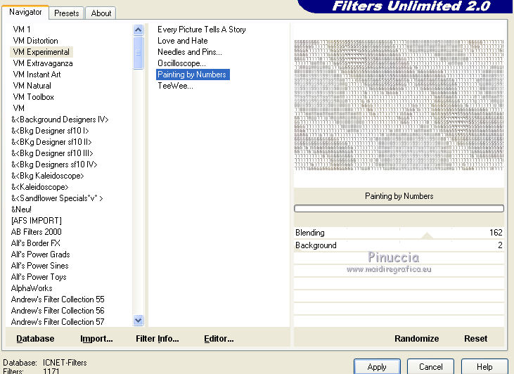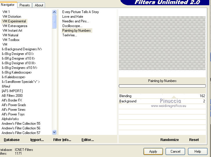 Effetti>Plugins>Filters Unlimited 2.0 - VM Experimental - Painting by Numbers.