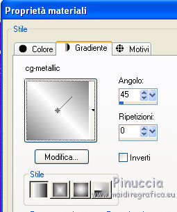Passa il colore di primo piano a Gradientee seleziona il gradiente cg_metallic con i seguenti settaggi.