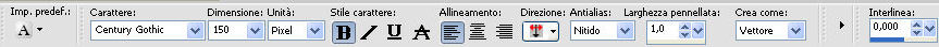 46. Attiva lo strumento Testo , font Century Gothic, con i seguenti settaggi.