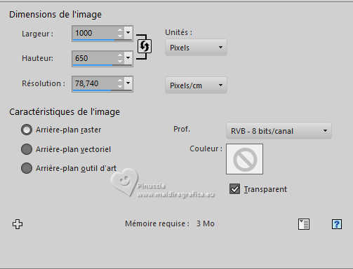 7. Ouvrir une nouvelle image transparente 1000 x 650 pixels.