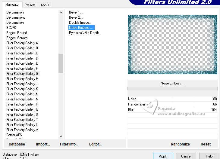 21. Effetti>Plugins>Filter Factory Gallery G - Noise Emboss, con i settaggi standard.