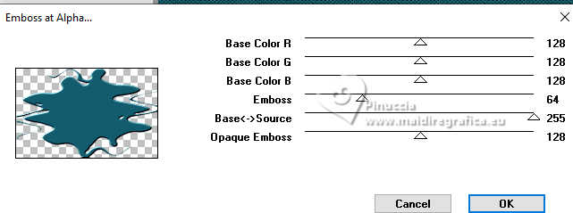 11. Effetti>Plugins>Mura's Seamless - Emboss at Alpha, con i settaggi standard