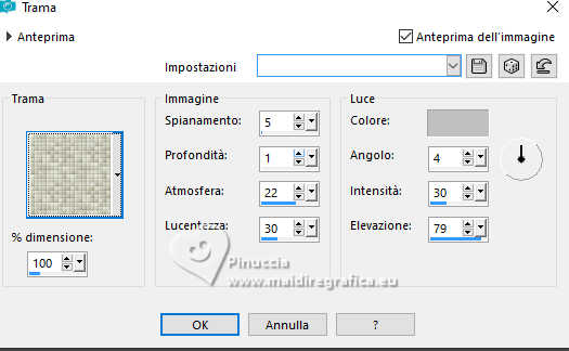 8. Effetti>Effetti di trama>Trama - seleziona la trama 1217493541_textures - colore #c0c0c0.