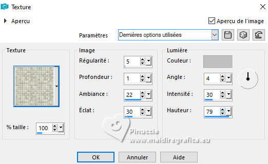 8. Effets>Effets de textures>Texture - sélectionner la texture 1217493541_textures - couleur #c0c0c0.