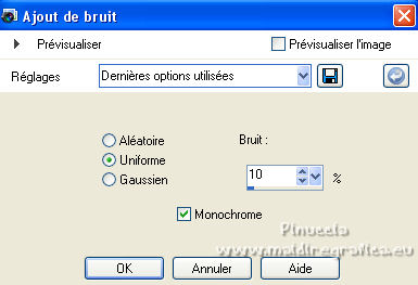 Réglage>Ajouter/Supprimer du bruit>Ajouter du bruit, comme précédemment.