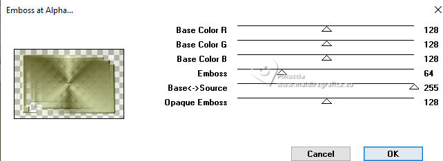 7. Effetti>Plugins>Mura's Seamless - Emboss at Alpha, con i settaggi standard.