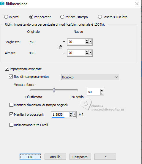 Immagine>Ridimensiona, al 70%, tutti i livelli non selezionato.