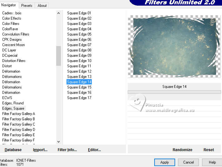 Effets>Modules Externes>Filters Unlimited 2.0 - Edges,Square - Square Edge 14
