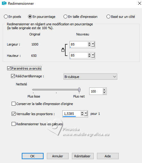 Image>Redimensionner, à 85%, redimensionner tous les calques décoché.
