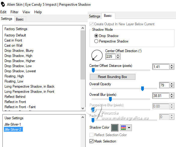 12. Effets>Modules Externes>Alien Skin Eye Candy 5 Impact - Perspective Shadow.