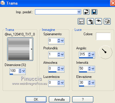 80. Effetti>Effetti di trama>Trama - seleziona la trama @nn_120410_TXT>001_tdstudio con i seguenti settaggi.