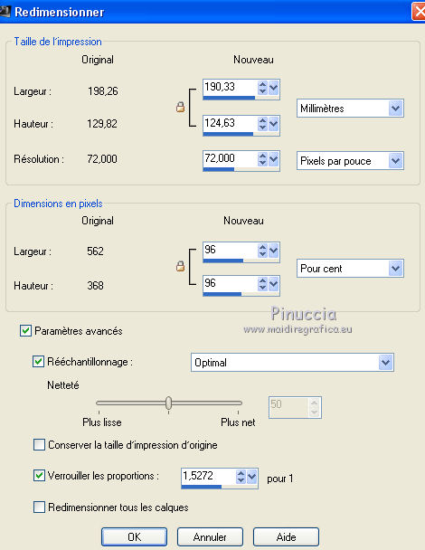 7. Image>Redimensionner, à 96%, optimal, redimensionner tous les calques décoché