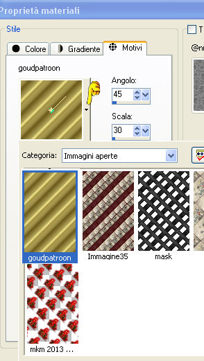 e seleziona, sotto la categoria Immagini aperte, il motivo oro "goudpatroon.jpg", con i seguenti settaggi.