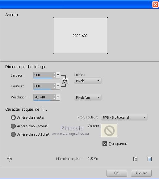 2. Ouvrir une nouvelle image transparente 900 x 600 pixels.