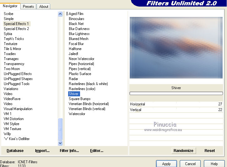 5. Effets>Modules Externes>Filters Unlimited 2.0 - Special Effects 1 - Shiver.