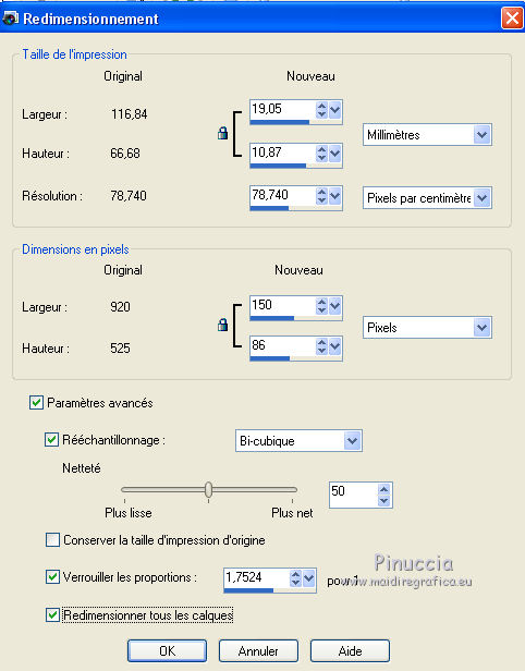 Image>Redimensionner, 150 pixels de largeur, redimensionner tous les calques coché.
