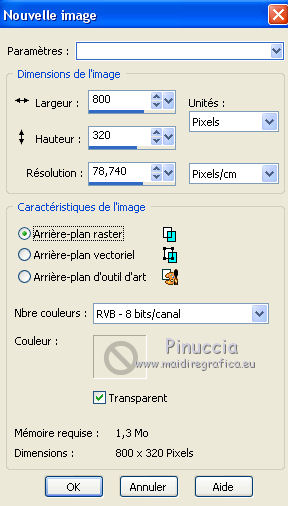 2. Ouvrir une nouvelle image transparente 800 x 320 pixels.