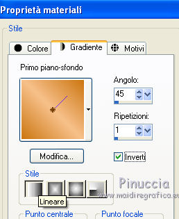 Passa il colore di primo piano a Gradiente lineare, con i seguenti settaggi.