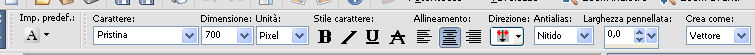 17. Attiva lo strumento Testo , font Pristina, con i seguenti settaggi.