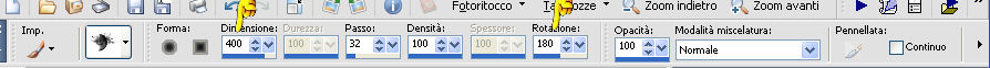 cerca il pennello che hai esportato, imposta la dimensione a 400 e la rotazione a 180: