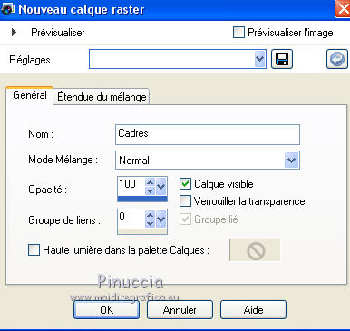 21. Calques>Nouveau calque raster, et profiter de la fenêtre qui s'ouvre per nommer le calque "Cadres".