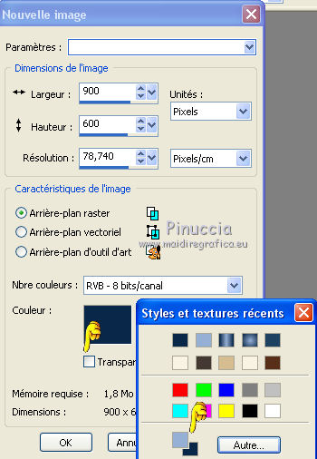 1. Ouvrir une nouvelle image 900 x 600 avec la couleur d'arrière plan.