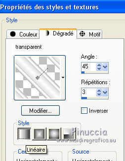 2. Placer en avant plan Dégradé, et sélectionner le dégradé "transparent", style Linéaire.