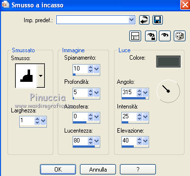 20. Effetti>Effetti 3D>Smusso a incasso, con il colore di primo piano.