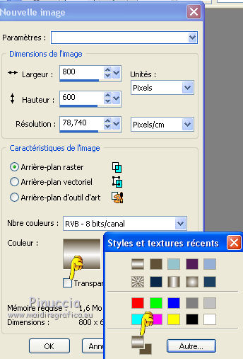 1. Ouvrir une nouvelle image 800 x 600, arrière plan Dégradé.