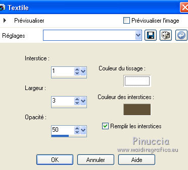 couleur du tissage: blanche - couleur des interstices: couleur d'arrière plan.