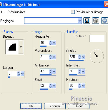 30. Effets>Effets 3D>Biseautage intérieur, comme précédemment.