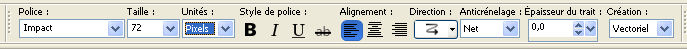 33. Activer l'outil Texte et sélectionner la police Impact, avec ces réglages.