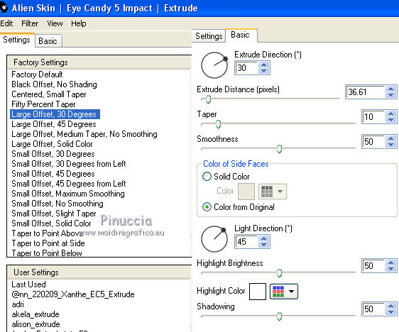 22. Effetti>Plugins>Alien Skin Eye Candy 5 Impact - Extrude.