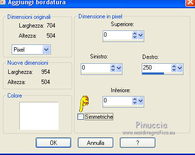 Immagine>Aggiungi bordatura, simmetriche non selezionato, colore bianco.