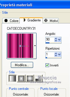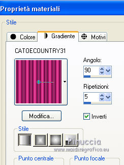 1. Passa il colore di primo piano a Gradiente, e seleziona il gradiente "Catoecountry31", con i seguenti settaggi.