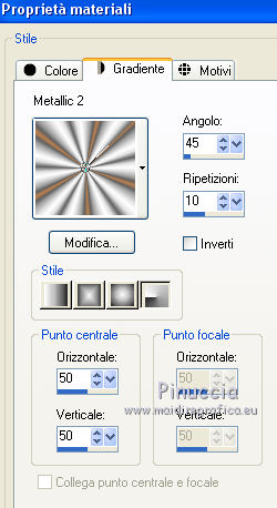 1. Passa il colore di primo piano a Gradiente, e seleziona il gradiente Metallic 2, stile Radiale.