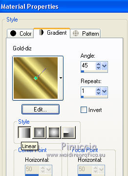 1. Set your foreground color to Gradient, and select the gradient Gold-diz, style Linear.