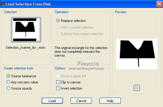 10. Selections>Load/Save Selection>Load Selection from Disk.