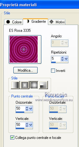 1. Passa il colore di primo piano a Gradiente, e seleziona il gradiente ES Rosa3335, stile Sprazzo di luce.