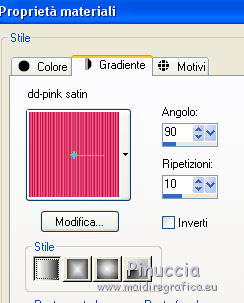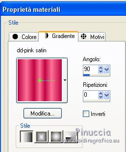 1. Passa il colore di primo piano a Gradiente, e seleziona il gradiente dd-pink satin, con i seguenti settaggi.