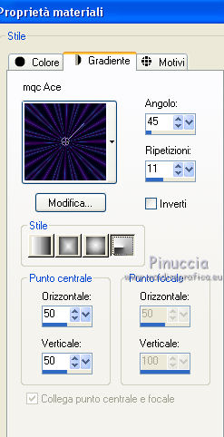 4. Cambia il gradiente e seleziona il gradiente mqcAce con i seguenti settaggi.